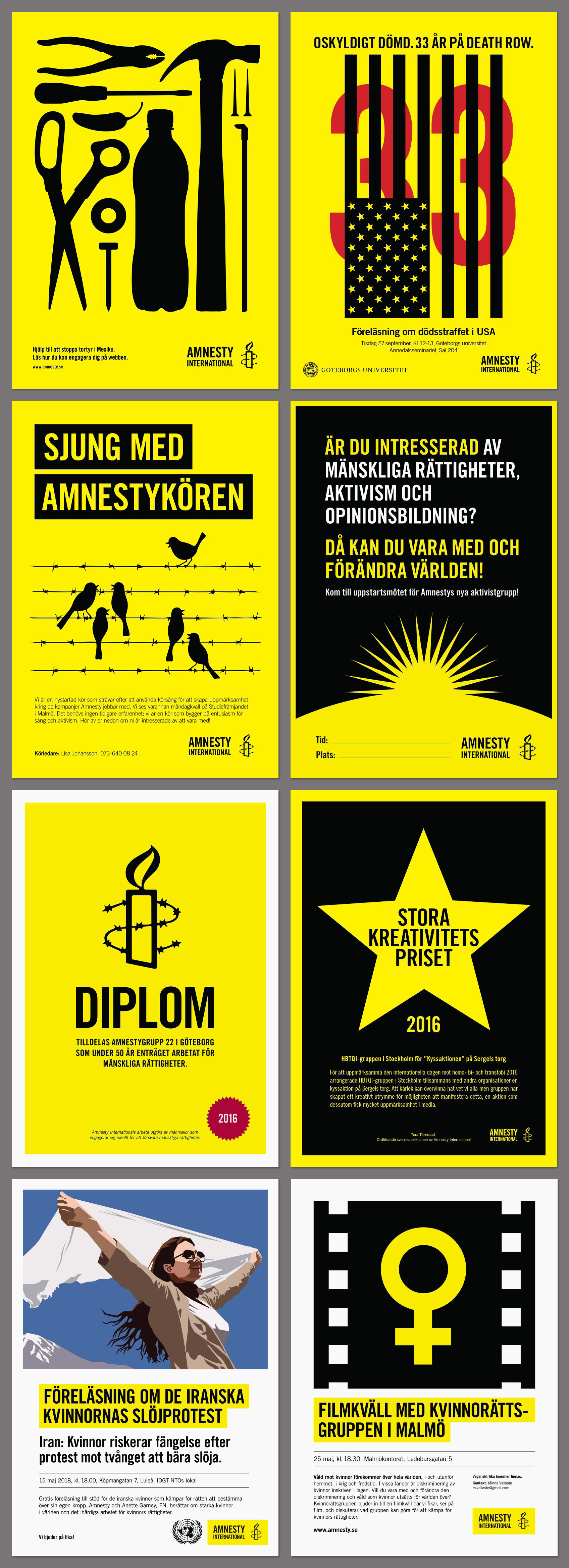 An assortment of Amnesty posters